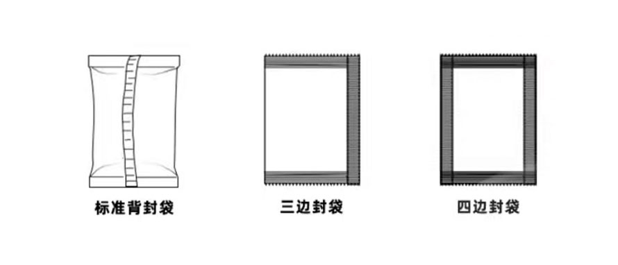 4、制袋方式可選擇:三邊封、背邊封、四邊封、帶沖圓角、異型袋等多種外觀。
